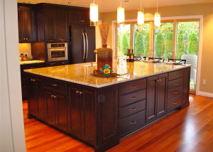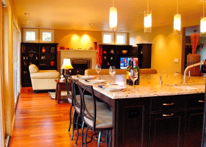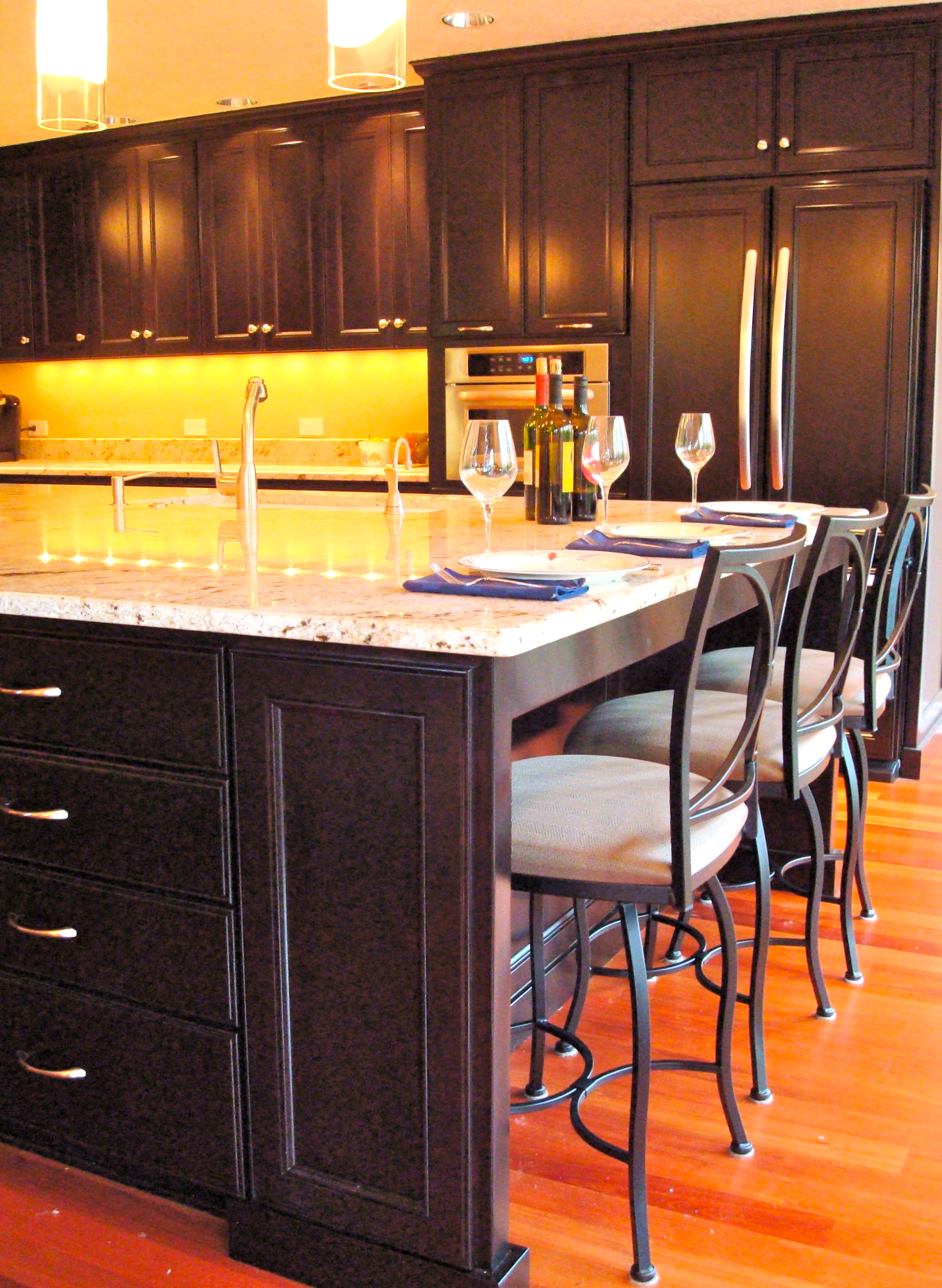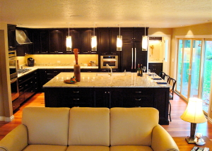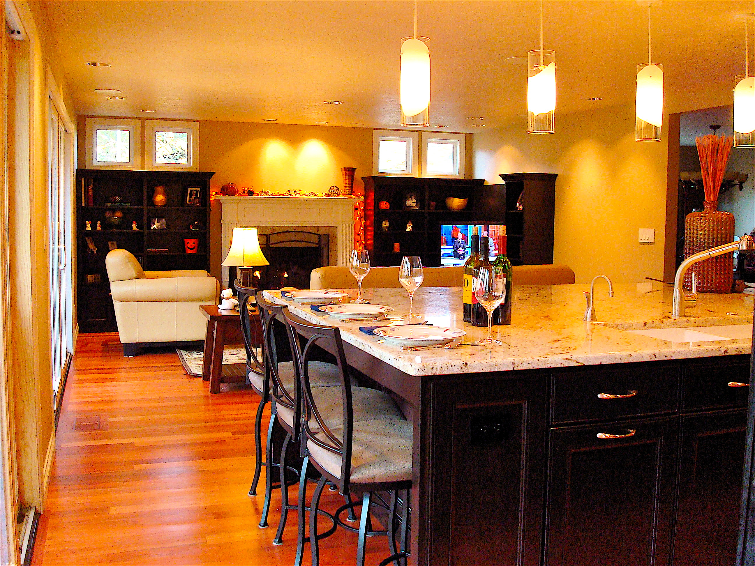 Incorporating the existing Breakfast Room into this home’s original 9 x 11 foot enclosed Kitchen allowed the creation of this new generous state-of-the-art Kitchen and Family Room open plan configuration. The adjacent Laundry Room was updated also.
